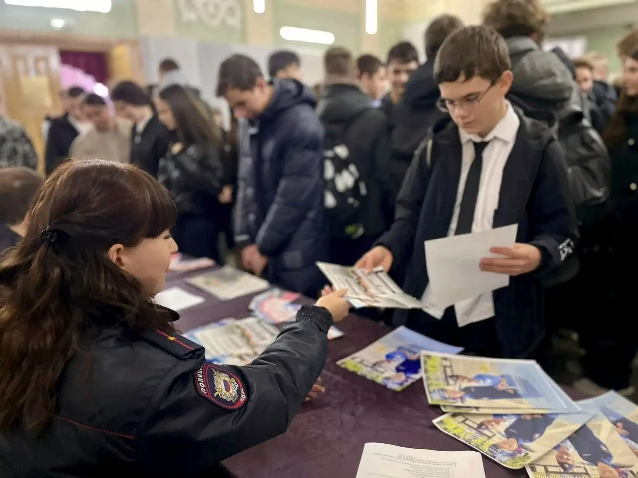 Затем ребят пригласили в Абинский культурно-досуговый центр, где сотрудники полиции рассказали об особенностях службы в различных подразделениях ОМВД, вручили наглядный материал, ответили на вопросы учащихся и продемонстрировали видеоматериал о работе кубанской полиции.