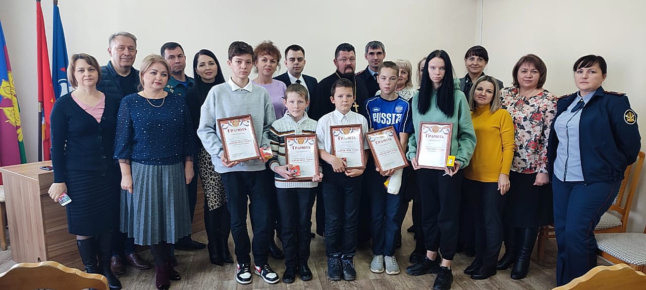 9 декабря 2022 г. в муниципальном образовании с участием членов комиссии по делам несовершеннолетних и защите их прав при администрации муниципального образования Лабинский район прошло торжественное мероприятие по награждению победителей краевого конкурса для несовершеннолетних «Здравствуй, мама!». Заместитель председателя комиссии Трошина Е.А. поблагодарила ребят за активное участие в конкурсе, вручила грамоты и призы краевой комиссии.