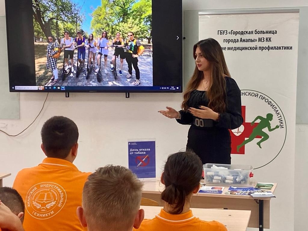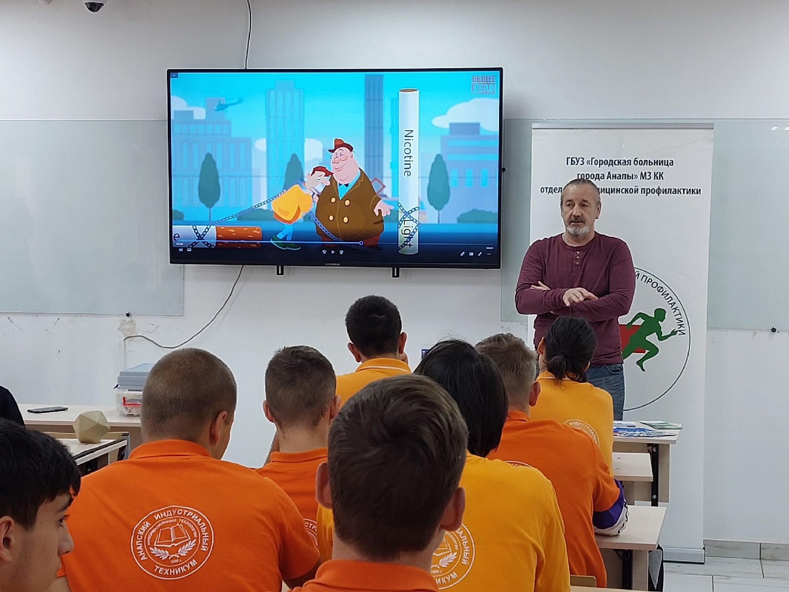 Также для студентов и школьников города-курорта Анапы проводятся межведомственные мероприятия антинаркотической направленности Кинолекторий «Курение. Взгляд изнутри» с показом профилактических фильмов общероссийской общественной организации «Общее дело», диалогом со специалистами города и прохождением исследования на смокелайзере.