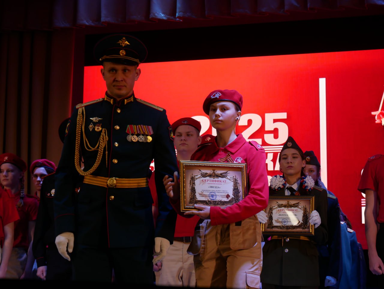 Юнармейцы впервые получили сертификаты о присвоении юнармейским отрядам названия, утвержденного Приказом начальника Кореновского военного гарнизона. В год 80-летия Победы был запущен проект, в котором каждая из 7 воинских частей Кореновского гарнизона на протяжении всего юбилейного года будет сопровождать юнармейцев в добрых начинаниях.