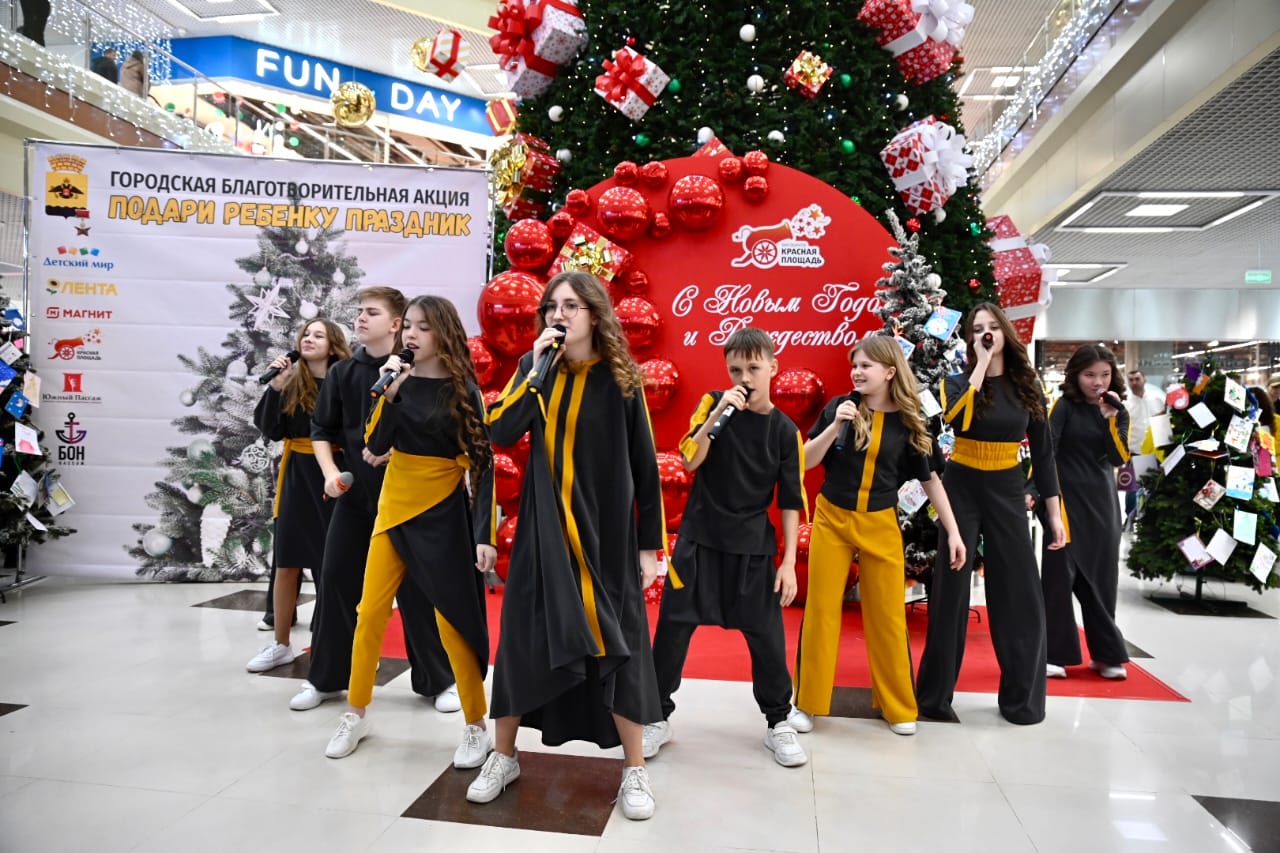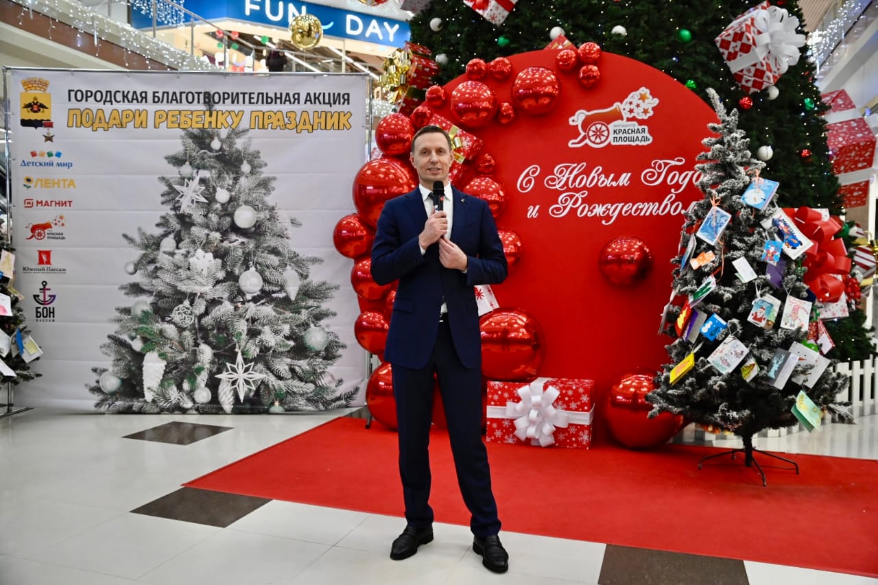 8 декабря 2023 г. в ТЦ «Красная площадь» с участием главы города Андрея Кравченко прошло торжественное открытие благотворительной акции «Подари ребенку праздник!».