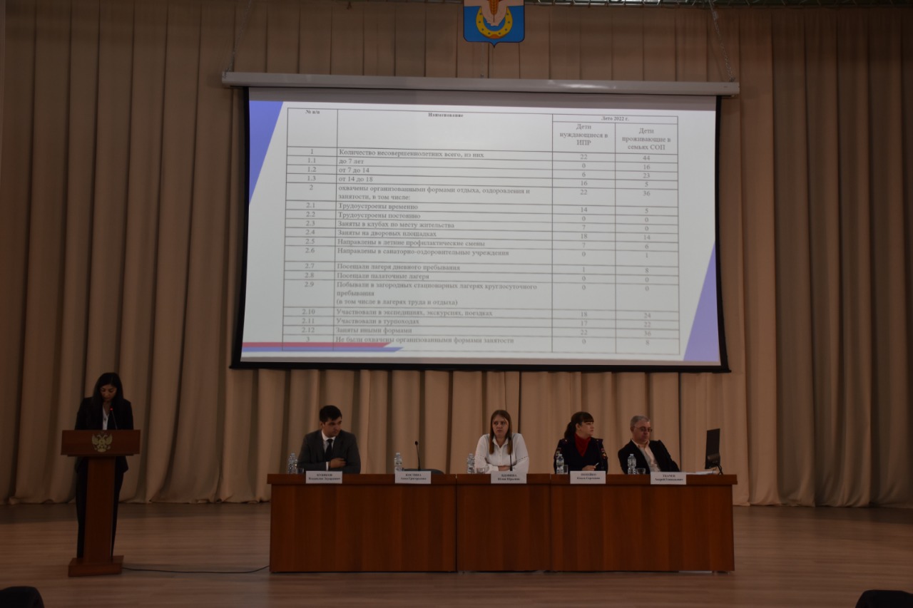 «Об итогах организации занятости, отдыха и оздоровления детей, состоящих на профилактическом учете в органах и учреждениях системы профилактики безнадзорности и правонарушений несовершеннолетних в летний период 2022 года» доложили начальник МКУ «Отдел по делам молодежи администрации муниципального образования Успенский район» Кулиева А.Р. и начальник отдела по вопросам физической культуры и спорта администрации муниципального образования Успенский район