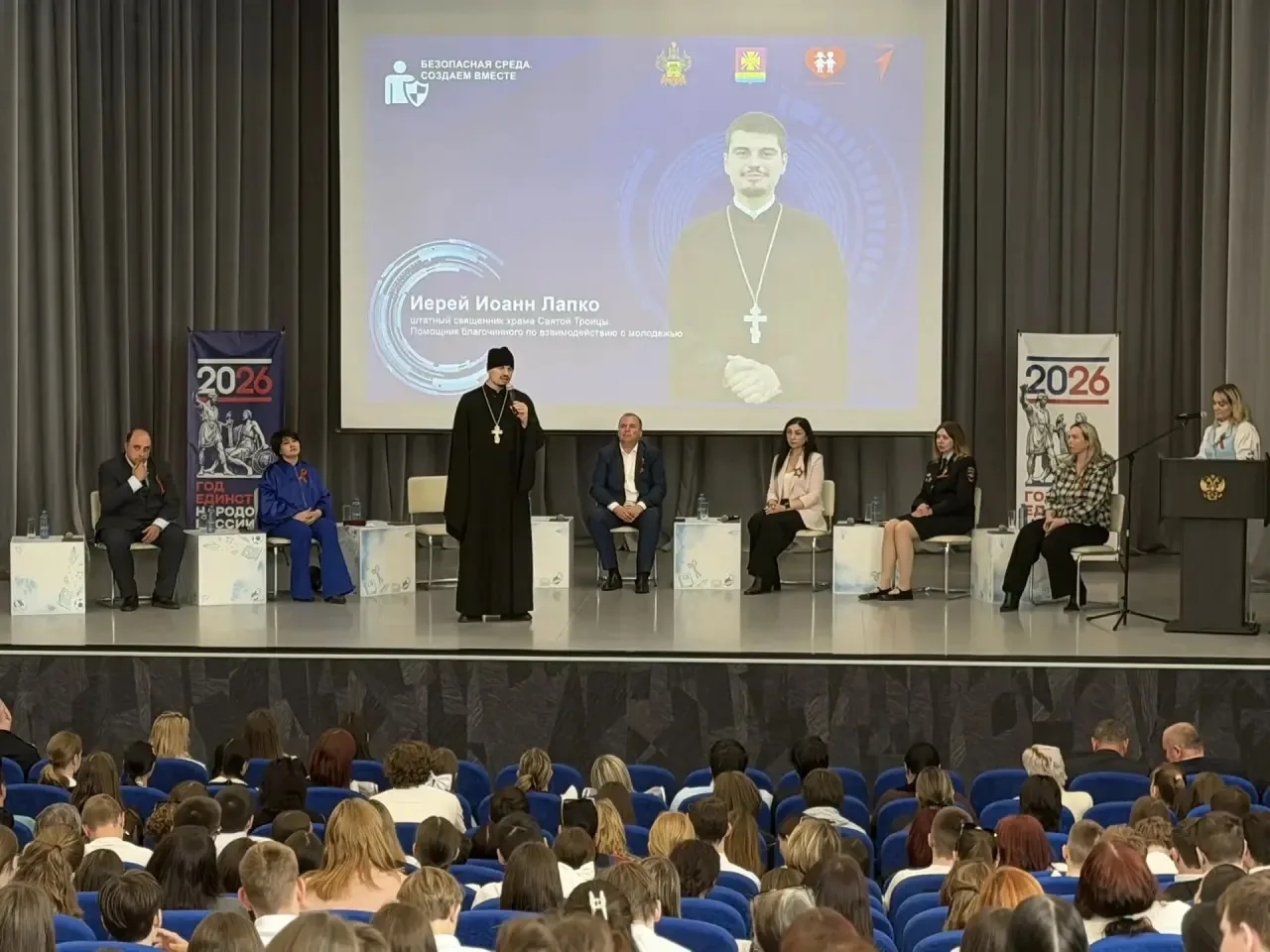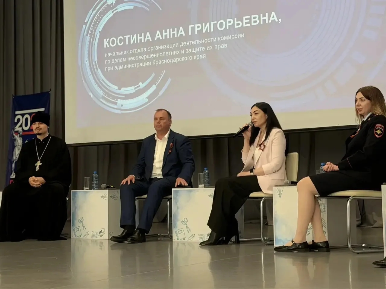 пленарное заседание с участием Костиной Анны Григорьевны, начальника отдела организации деятельности комиссии по делам несовершеннолетних и защите их прав министерства труда и социального развития Краснодарского края; Соловьяновой Валерии Викторовны, врио начальника отдела по организации деятельности подразделений по делам несовершеннолетних управления организации деятельности участковых уполномоченных полиции и подразделений по делам несовершеннолетних ГУ МВД РФ по Краснодарскому краю; Фисун Александра Анатольевича, заместителя главы муниципального образования Динской муниципальный район Краснодарского края, а также приглашенных экспертов и духовенства Динского района: Иерей Иоанн Лапко, штатный священник храма Святой Троицы, помощник благочинного по работе с молодежью; Якуба Альберт Владимирович, руководитель Координационного центра по вопросам формирования у молодежи активной гражданской позиции, предупреждения межнациональных и межконфессиональных конфликтов, противодействия идеологии терроризма и профилактики экстремизма КубГУ; Половинка Галина Андреевна, психолог-психотерапевт, нейро-патопсихолог, семейный, кризисный психолог, клинический психолог, психолог-эксперт, мастер НЛП международного уровня, член президентского резерва ОППЛ, президент Краснодарского отделения