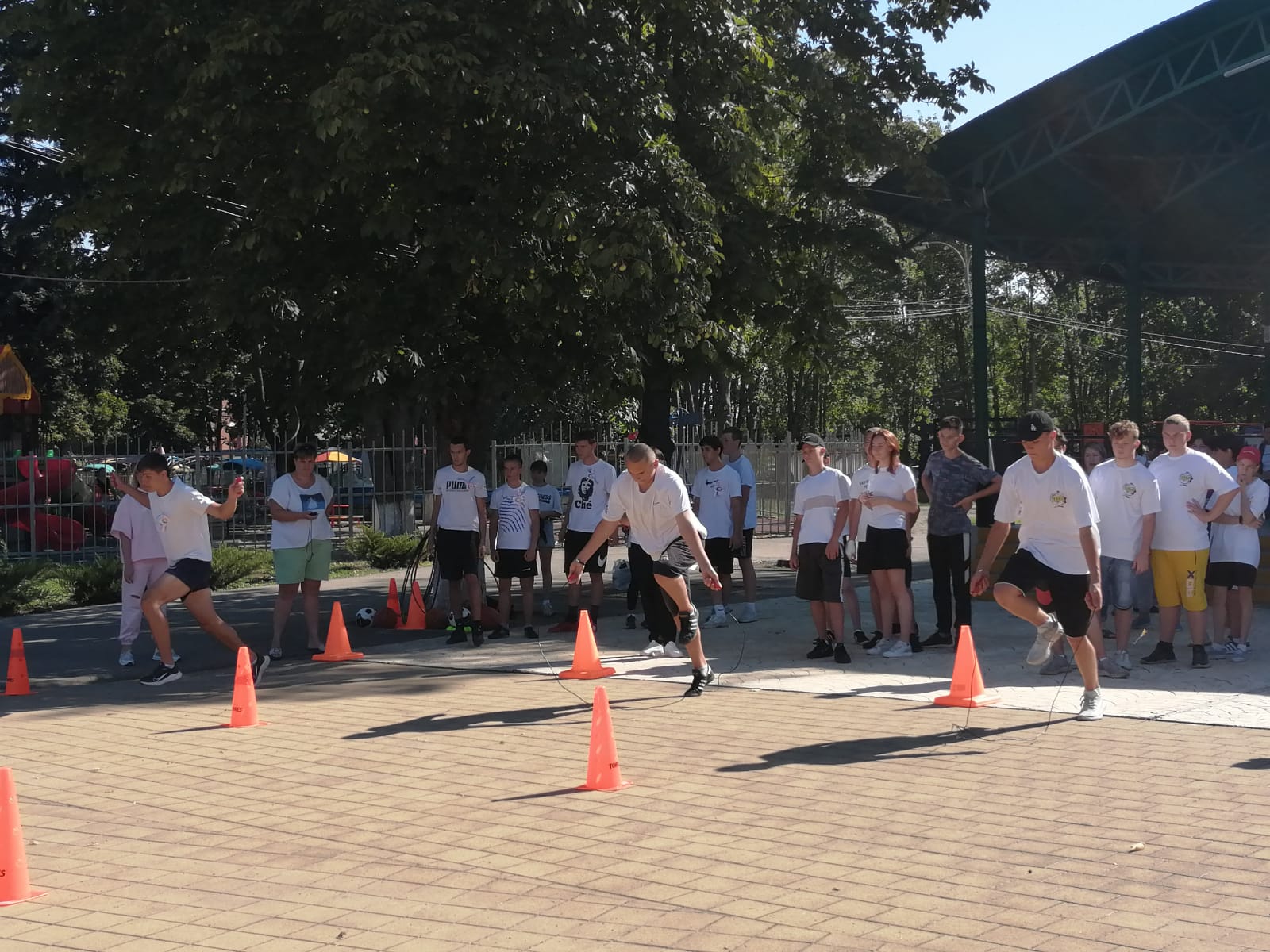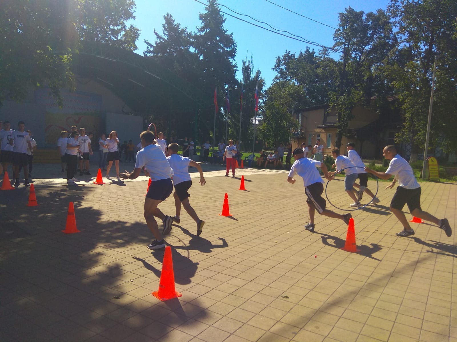 4 этапа командных соревнований: комбинированную эстафету, эстафету с мячами, прыжки через скакалку, дартс.