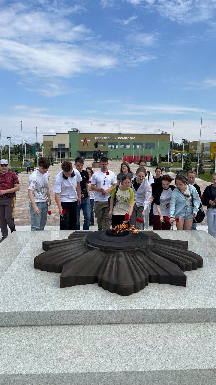 Во время экскурсии ребята узнали историю создания центра, посетили храм, побывали на аллее героев и возложили цветы у Мемориальной стены с Вечным огнем, отдав дань памяти всем погибшим защитникам Отечества.
