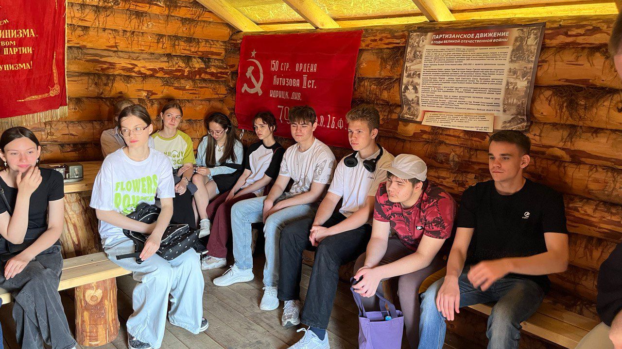 Посетили «Партизанскую деревню», где ребятам продемонстрировали оружие времен Великой Отечественной Войны, показали, как выглядели окопы и блиндажи внутри.