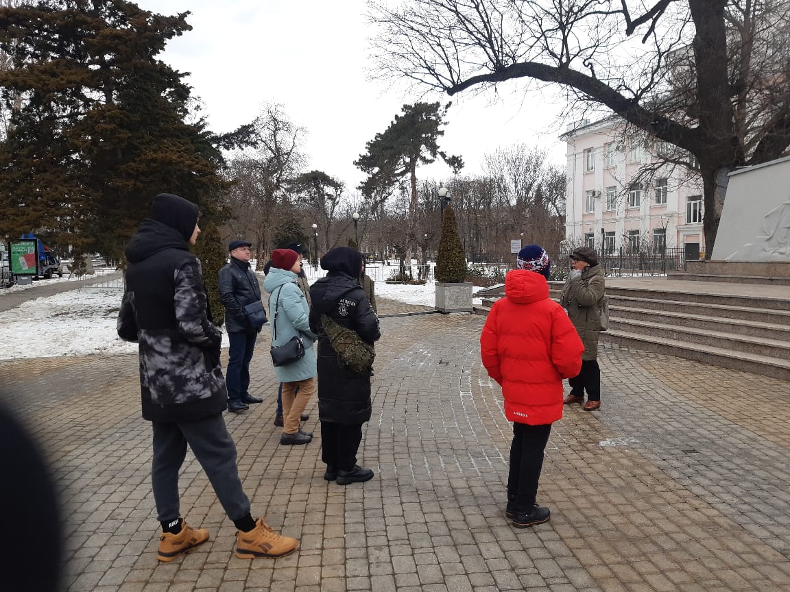 Завершилась экскурсия у памятника советским воинам-освободителям, установленного в память о солдатах, принимавших участие в освобождении Краснодара от немецко-фашистских захватчиков, участники узнали о событиях тех тяжелых дней.