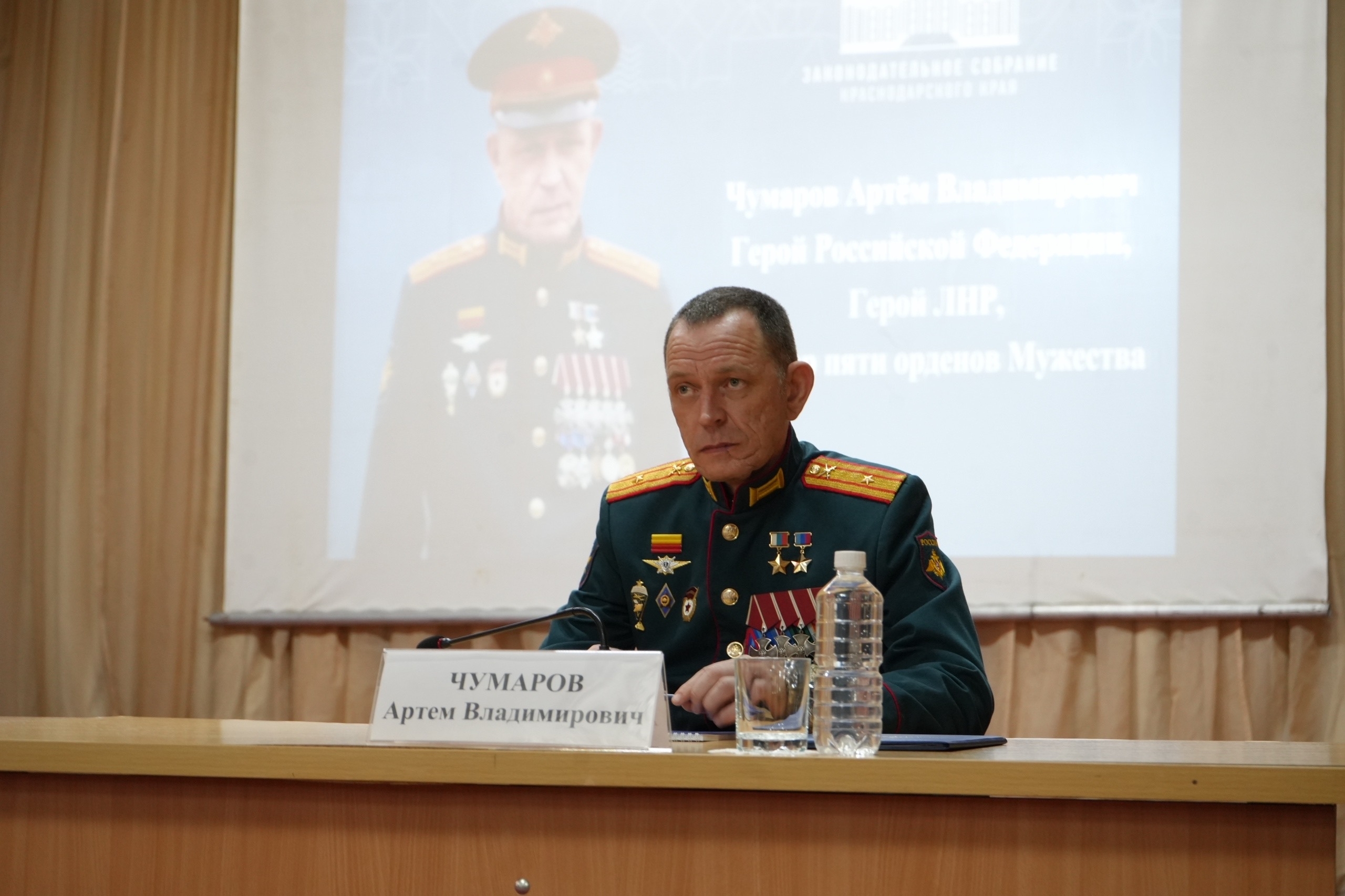 11 марта 2026 г. в доме культуры «Лира» села Успенского прошла тематическая встреча с молодежным активом Успенского района Героя Российской Федерации, кавалера пяти орденов Мужества Артема Владимировича Чумарова.