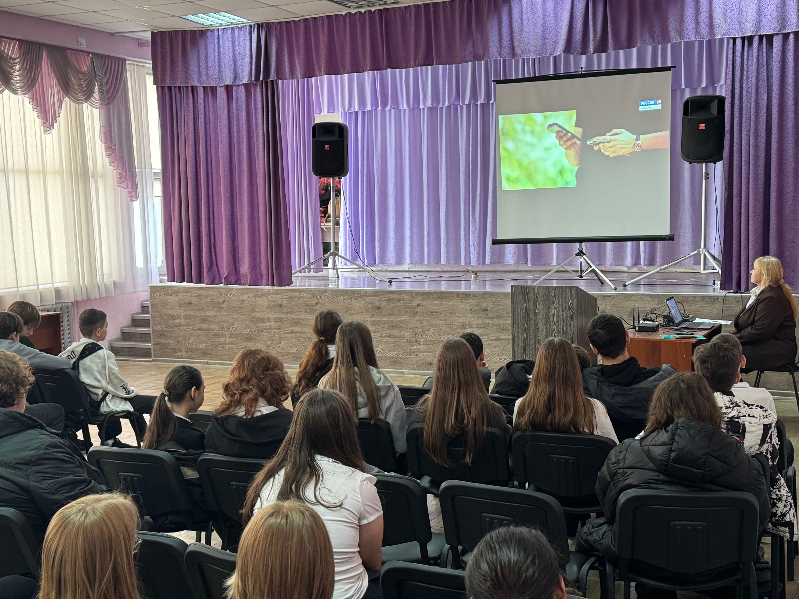 В ходе мероприятия вниманию школьников был представлен документальный фильм «Игры с огнем» телеканала «Россия. Кубань». Также все участники беседы были проинформированы об уголовной ответственности в соответствии со статьей 207 Уголовного кодекса Российской Федерации и пропаганду экстремизма в сети «Интернет».