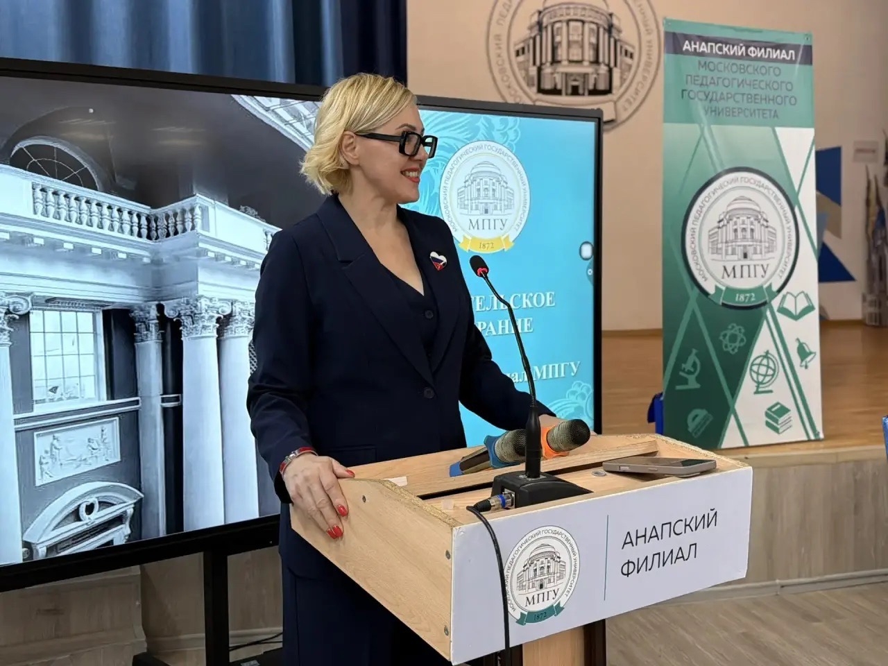 С приветственным словом к собравшимся обратилась Елена Анатольевна Некрасова, директор Анапского филиала МПГУ, заместитель председателя Совета г. Анапы, почетный работник сферы образования Российской Федерации.