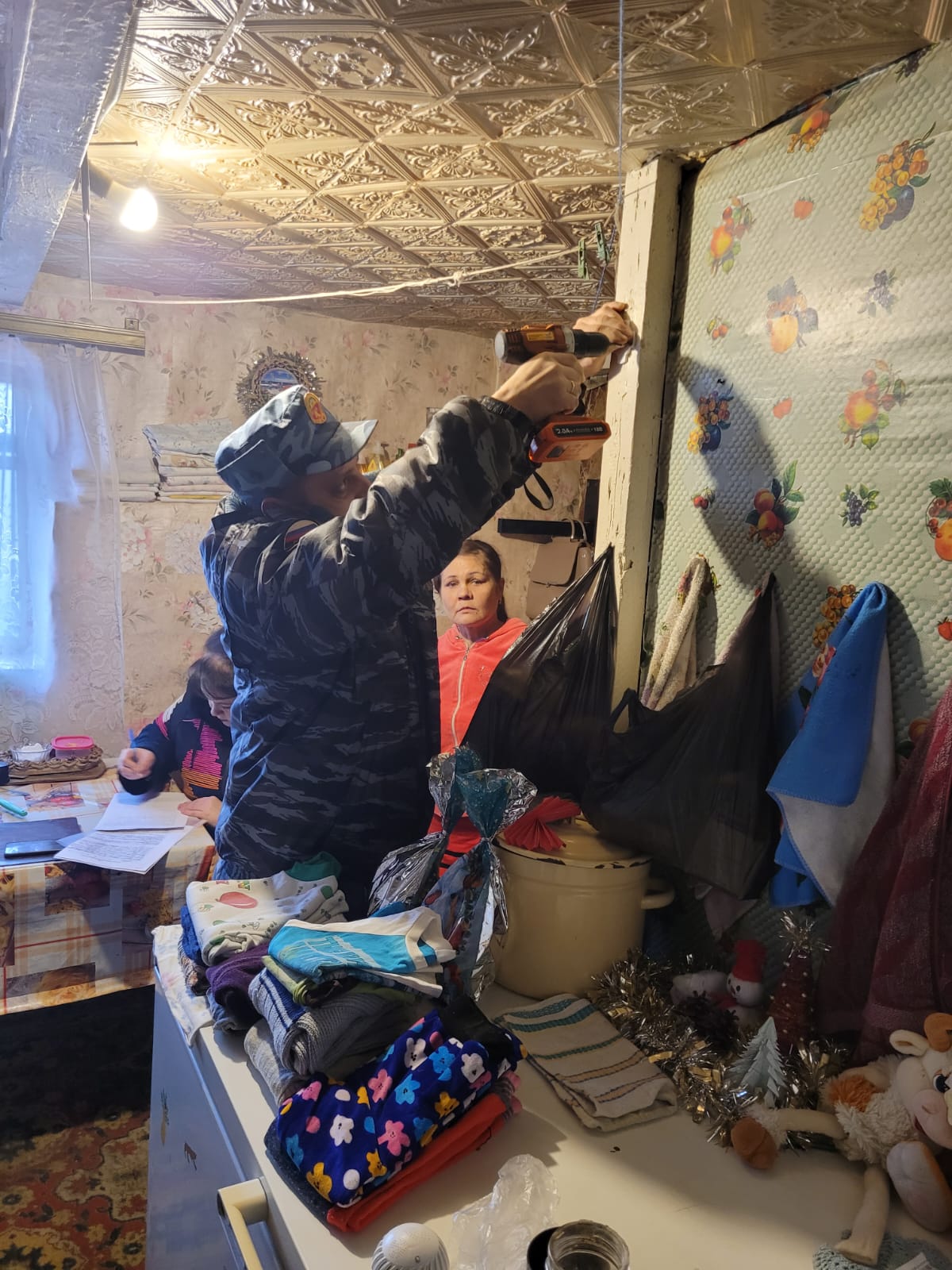 В Ейском районе всего было посещено 137 семей, имеющих 284 несовершеннолетних детей. В ходе посещения семьям оказана помощь, детям вручены новогодние подарки. В 6 семьях были выявлены и устранены нарушения пожарной безопасности (неисправленные розетки, электропроводка, газовый баллон находился в жилом помещении).