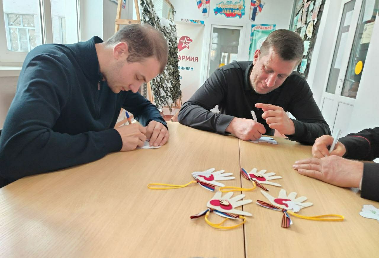 Ребята и гости школы написали на «голубях мира» искренние слова поддержки и пожелания для солдат, находящихся на передовой. Эти послания, наполненные домашним теплом, были переданы Сергею Евгеньевичу, он рассказал о важности такой поддержки для тех, кто защищает нашу Родину.