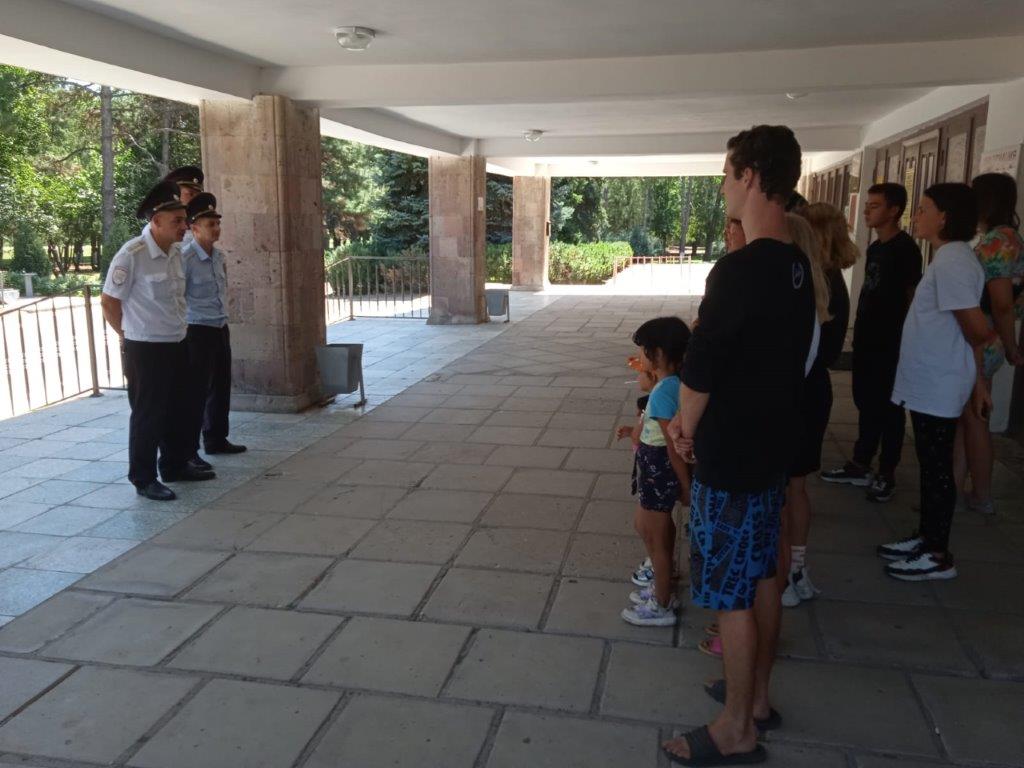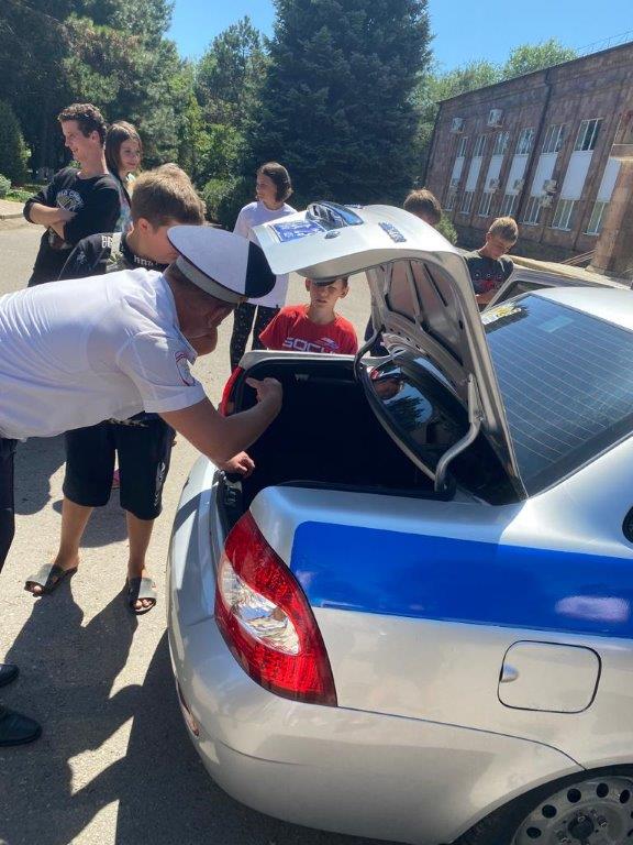 Сотрудники отделения государственной инспекции безопасности дорожного движения рассказали ребятам о своей работе, познакомили с патрульным автомобилем ГИБДД, со специальными средствами сотрудника: жезлом, рацией, бронежилетом, сигнальным громкоговорящим устройством. Дорожные полицейские рассказали интересные факты из своей работы.