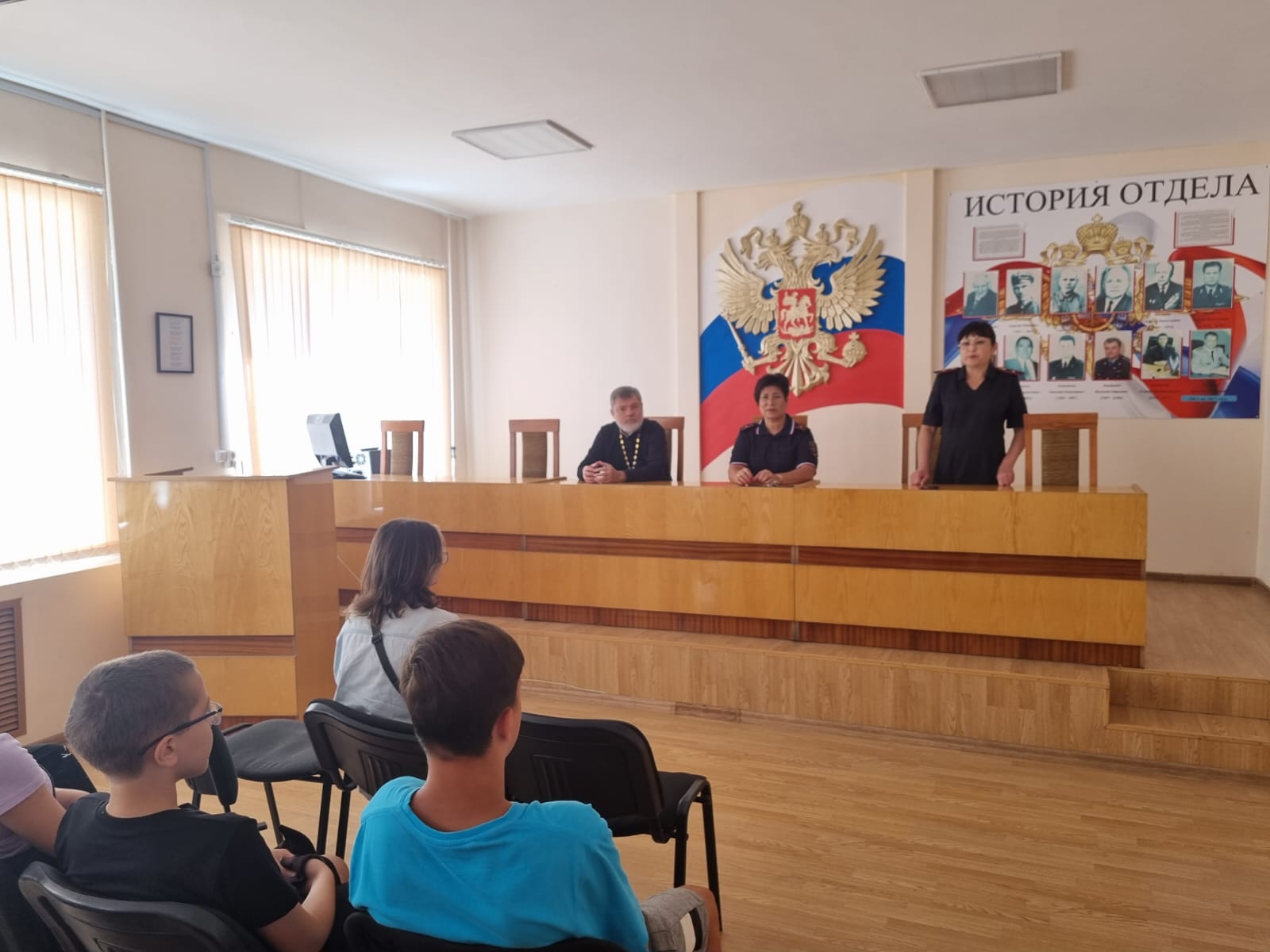 Общественник протоиерей Александр Бондаренко, побеседовал с ребятами о семейных ценностях, о важности семьи в жизни каждого человека, о христианской морали, напомнил ребятам, что при совершении противоправных поступков, деформируется духовное начало ребенка.