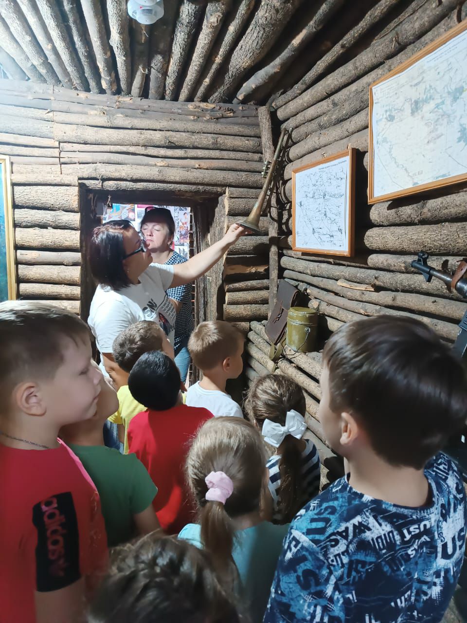 Особенно юных посетителей музея заинтересовал блиндаж, где расположены картины художников-любителей, ветеранов Великой Отечественной войны, предметы из коллекции «Предметы прикладного искусства, быта и этнографии»: котелок, фотоаппарат военного времени и многие другие.