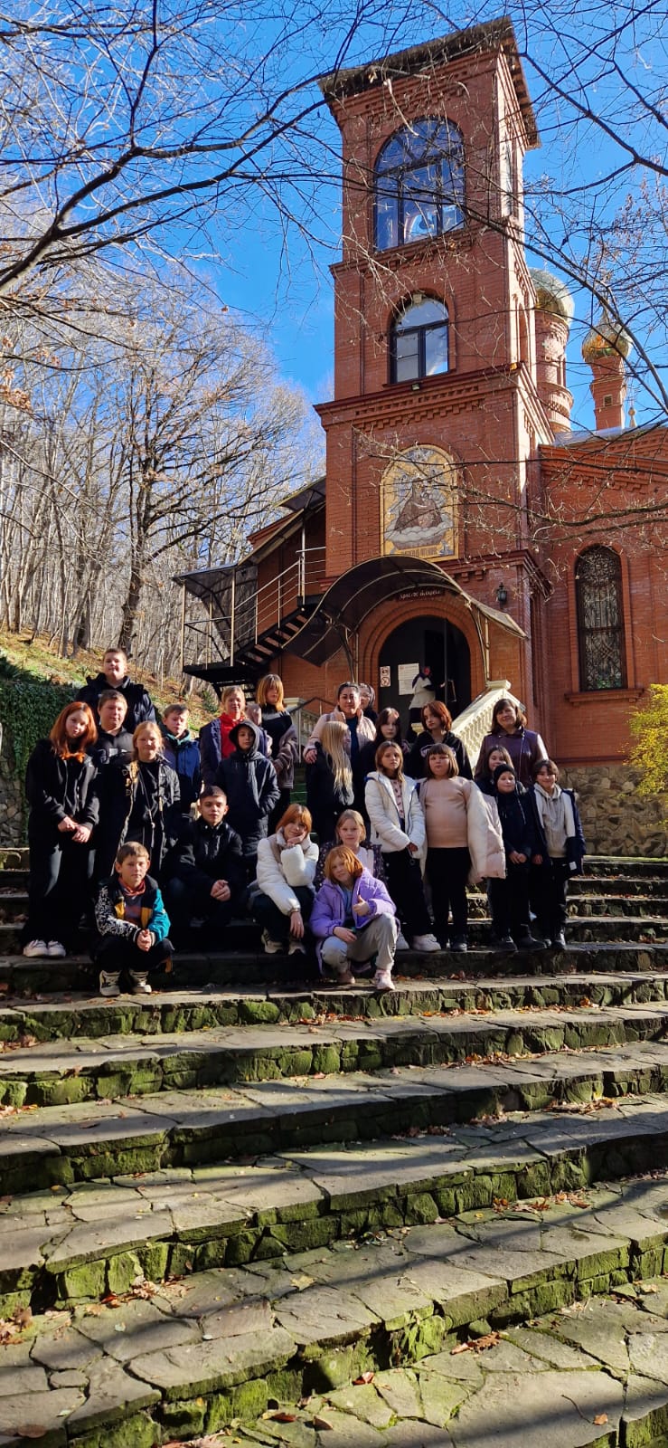 В начале своего путешествия ребята посетили Пустынь Феодосия Кавказского в пос. Горный, где для них провели экскурсию по святым местам и рассказали о Святом Феодосии, его жизни, возникновении этого места и строительстве на нем храма.