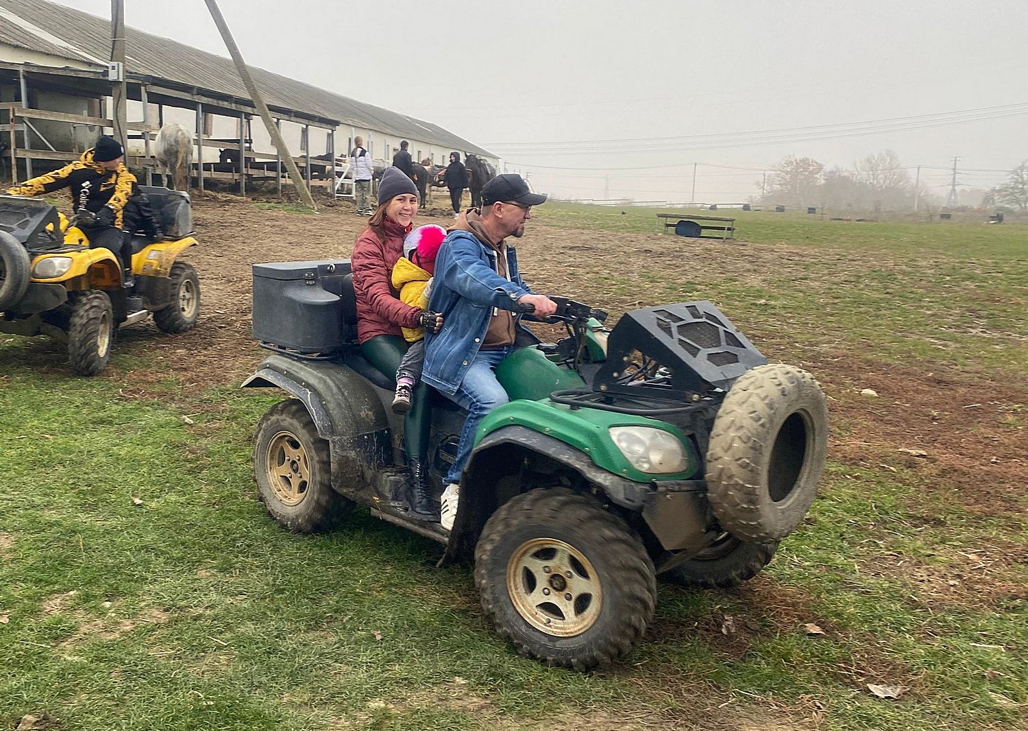 Экскурсия по Ферме, знакомство с лошадками и катание на них, зашли в гости к коровкам и овечкам, ралли на квадроциклах, стол с вкуснейшими блинами, пирожками, фруктами – вот чем был наполнен день ребят.