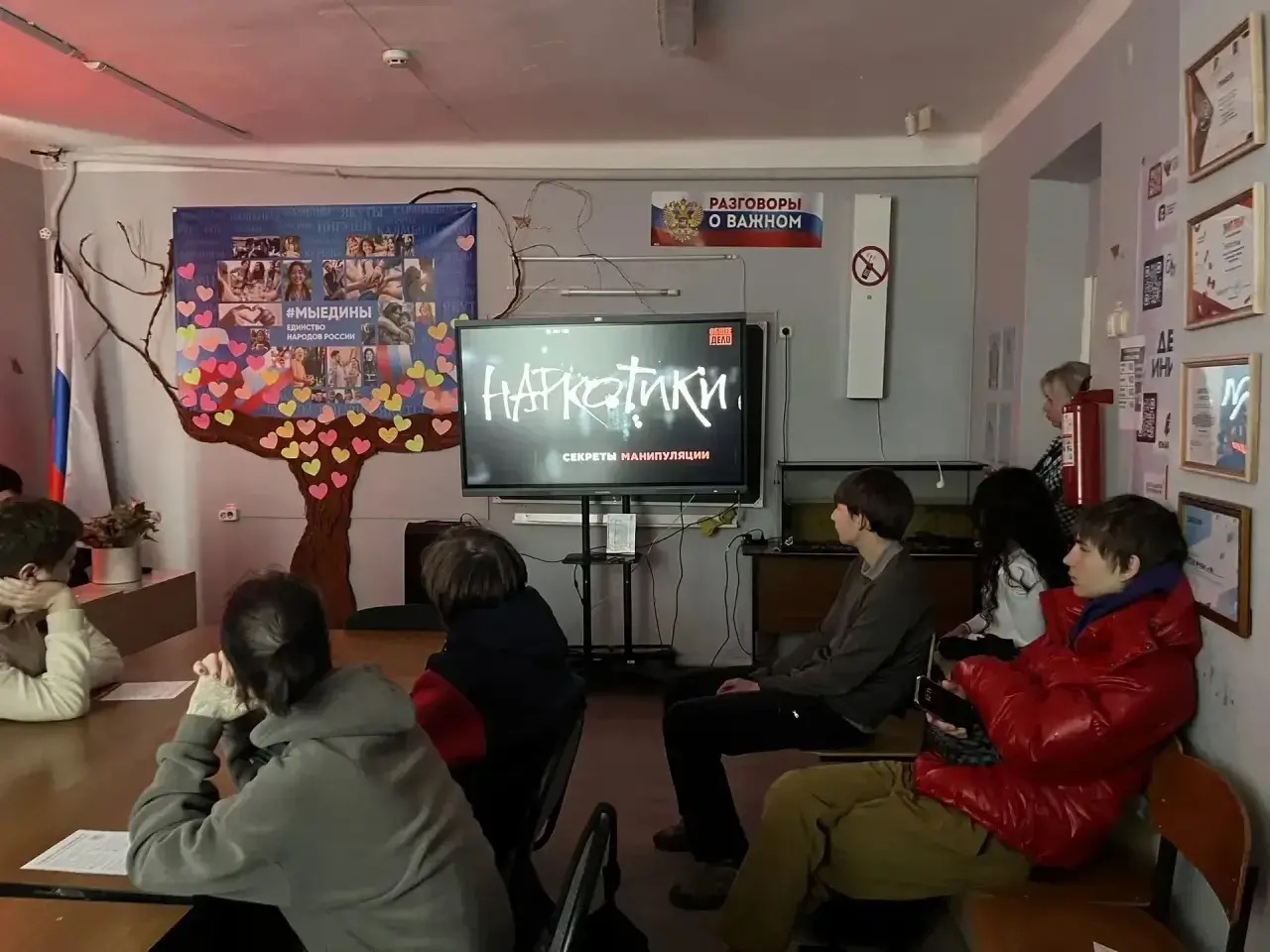 Ребята посмотрели фильм о влиянии наркотиков на человека. В картине показан процесс втягивания подростков в употребление наркотических средств, развеян миф о том, что «первая доза не вызывает привыкания».