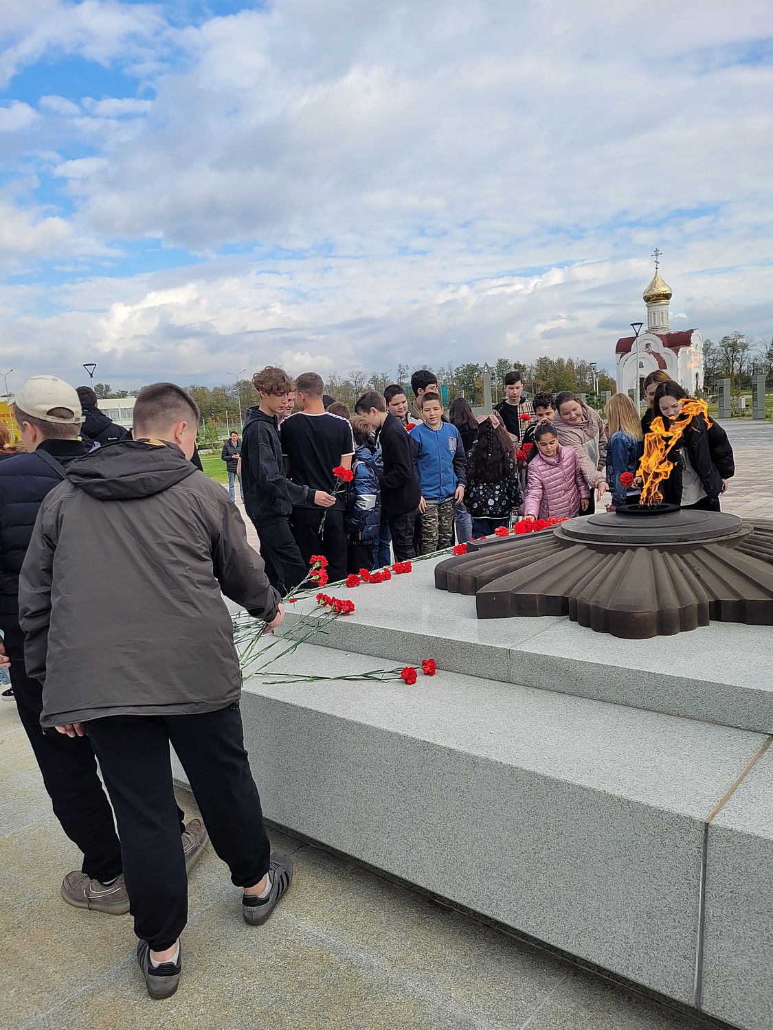 Экскурсия началась с минуты молчания и возложения цветов к Вечному огню, далее состоялся просмотр видеоролика о военно-патриотическом центре.