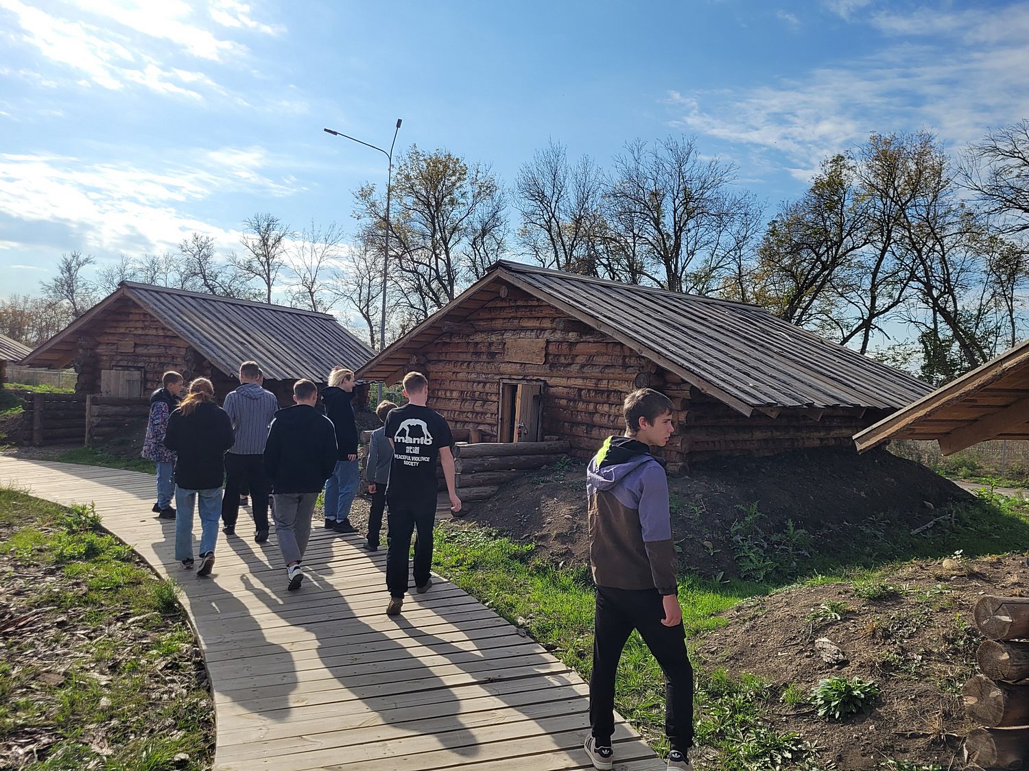 Далее ребята посетили деревню партизан, посмотрели убранство внутри блиндажей. Экскурсия завершилась осмотром территории и памятных мест.