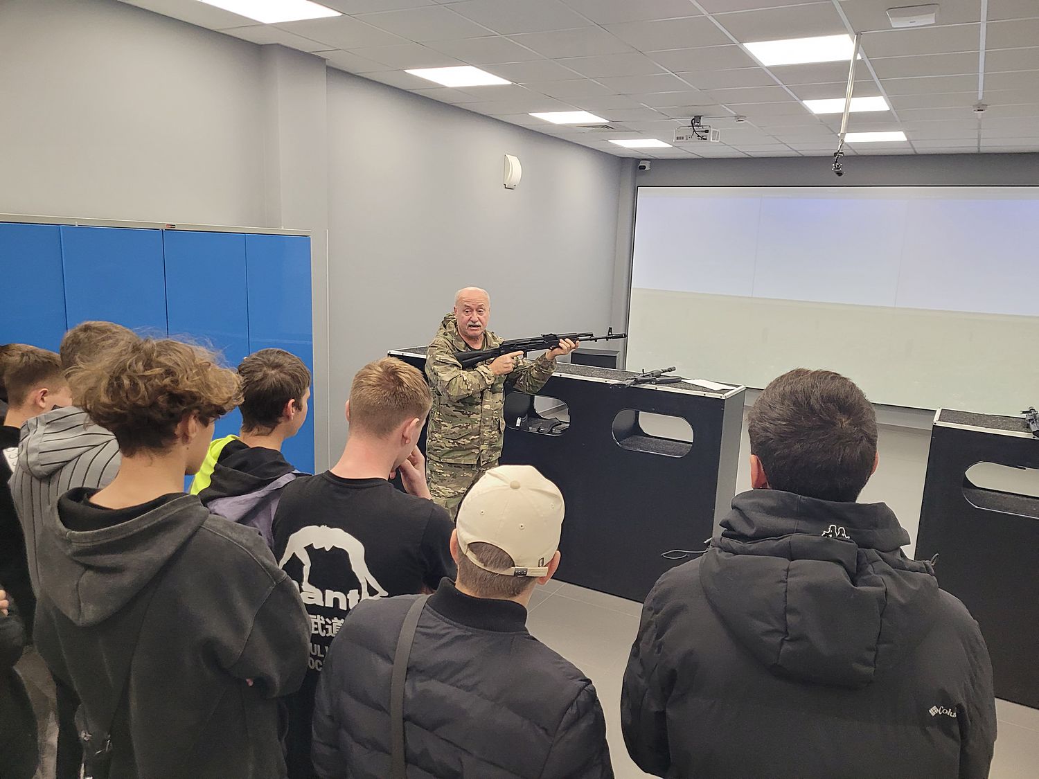 Затем экскурсия продолжилась в интерактивном тире, где несовершеннолетних научили как правильно держать оружие, стрелять точно в цель.