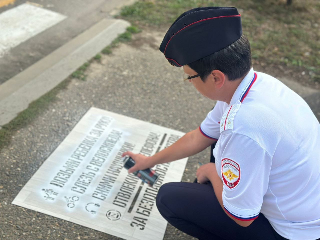Надписи, предупреждающие о необходимости быть внимательным и осторожным при переходе проезжей части, нанесли на тротуары специалисты МКУ «Центр по физической культуре, массовому спорту и работе с молодежью» и сотрудники Госавтоинспекции.