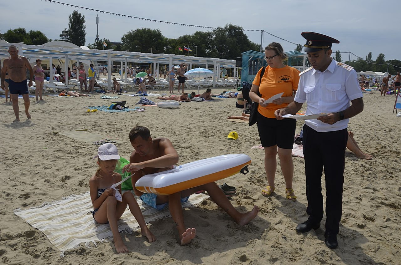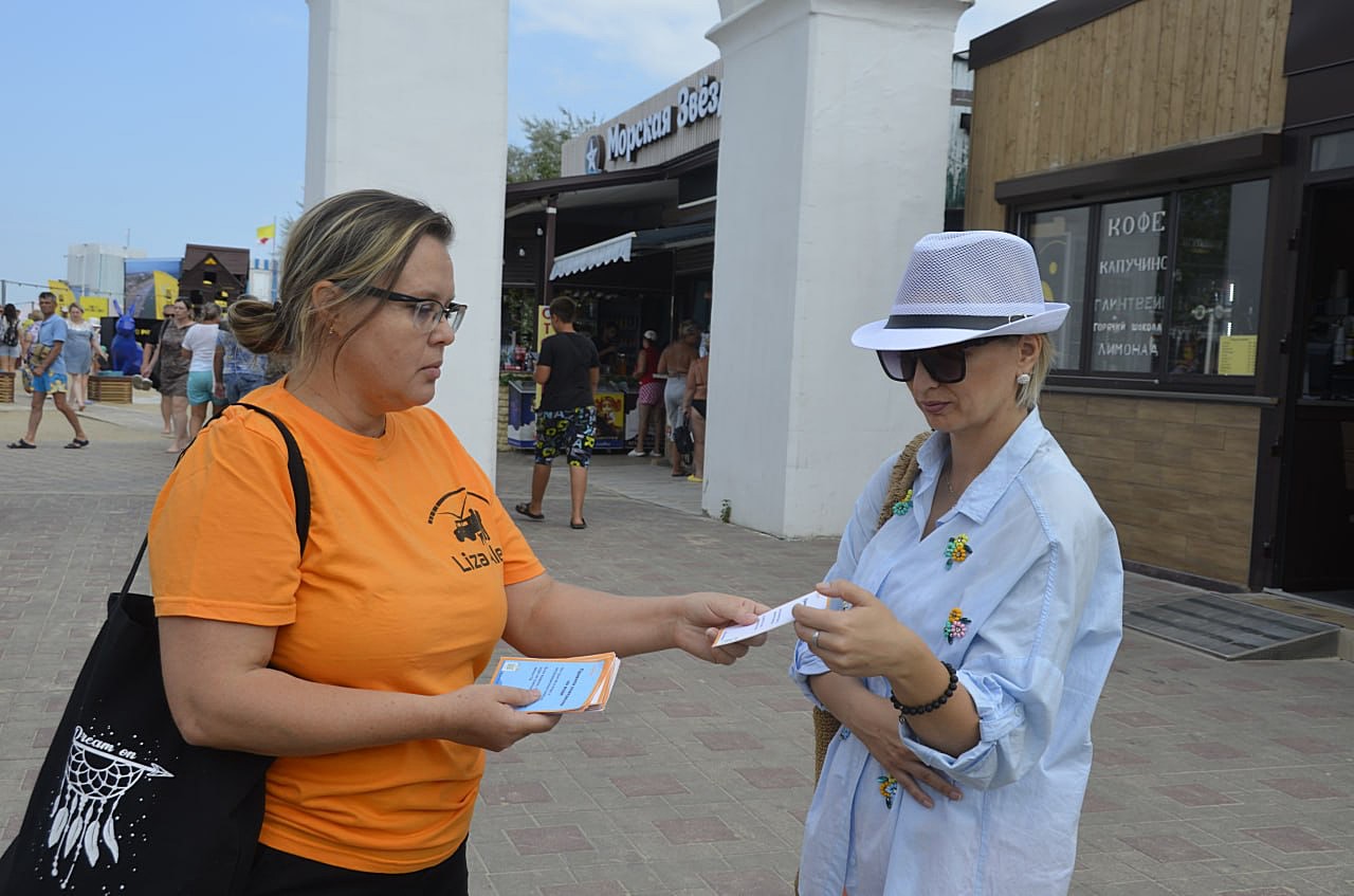 Волонтер поисково-спасательного отряда «ЛизаАлерт» Алла Рудакова раздала детям и взрослым памятки по безопасному отдыху на море.