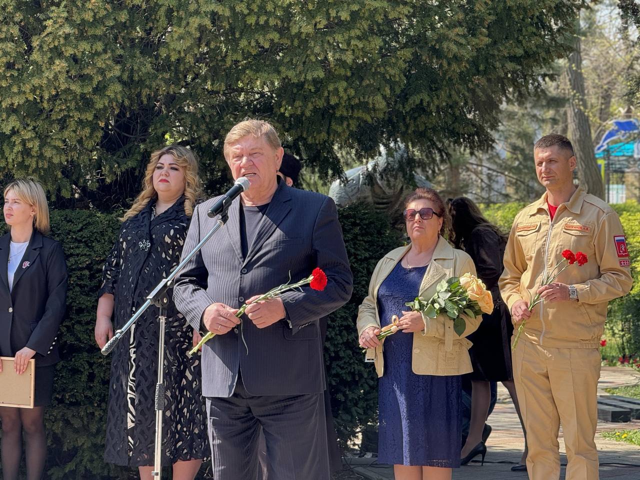 Церемония прошла в присутствии родных и близких Андрея Алексеевича, председателя регионального отделения ВВПОД «Юнармия» Краснодарского края Николая Капранова, руководителей общественных ветеранских организаций, юнармейцев, молодежи города.