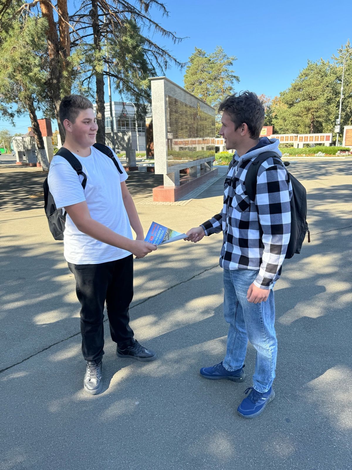9 октября 2024 г. на территории Мемориального Комплекса «Площадь победы» в г. Лабинске специалистами управления по делам молодежи администрации муниципального образования Лабинский район совместно с волонтерами проведена раздаточная акция для несовершеннолетних, проживающих на территории района. Памятки «Что делать, чтобы состояться в жизни?» были разработаны комиссией по делам несовершеннолетних и защите их прав при администрации муниципального образования Лабинский район.