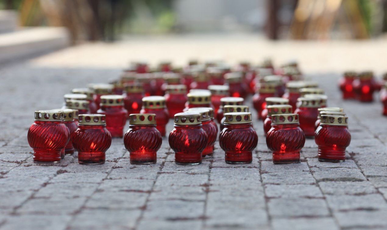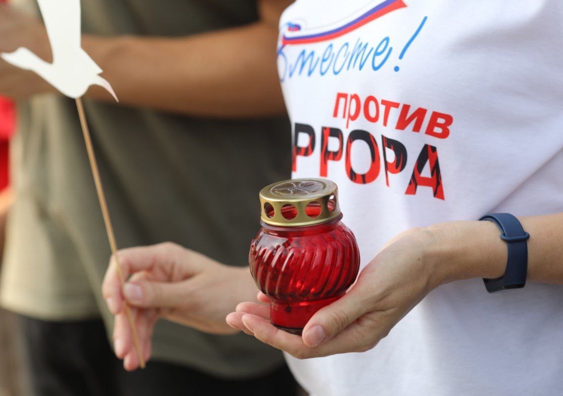 В качестве символической дани памяти жертвам террористических актов и тем, кто погиб при исполнении служебного долга, спасая других, ребята прикрепили белых бумажных журавлей на баннер «День солидарности в борьбе с терроризмом» и оставили лампады во дворе храме.