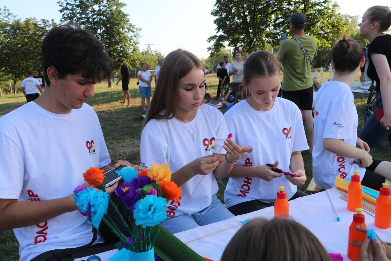 После завершения велопробега волонтеры Кубанского союза молодежи совместно с хуторским казачьим обществом Тбилисского района организовали для участников разнообразные интерактивные зоны, где каждый мог попробовать себя в настольных играх, крупных шахматах, рубке шашкой, метании ножей, стрельбе из лука и пейнтболе, мастер-классе по изготовлению гвоздики «Цветок мужества», а также имел возможность выбрать любимую песню и исполнить ее в караоке.