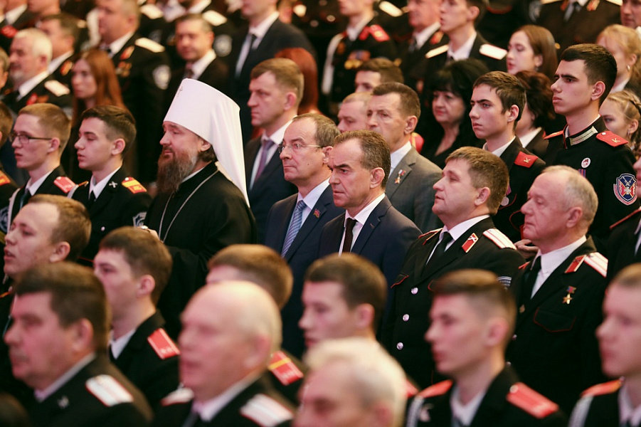 Затем Вениамин Кондратьев вручил руководителям казачьих корпусов и школ, сотрудникам департамента по делам казачества, военным вопросам и работе с допризывной молодежью края награды и благодарности за высокие достижения в работе по возрождению и сохранению исторических, культурных и духовных традиций.