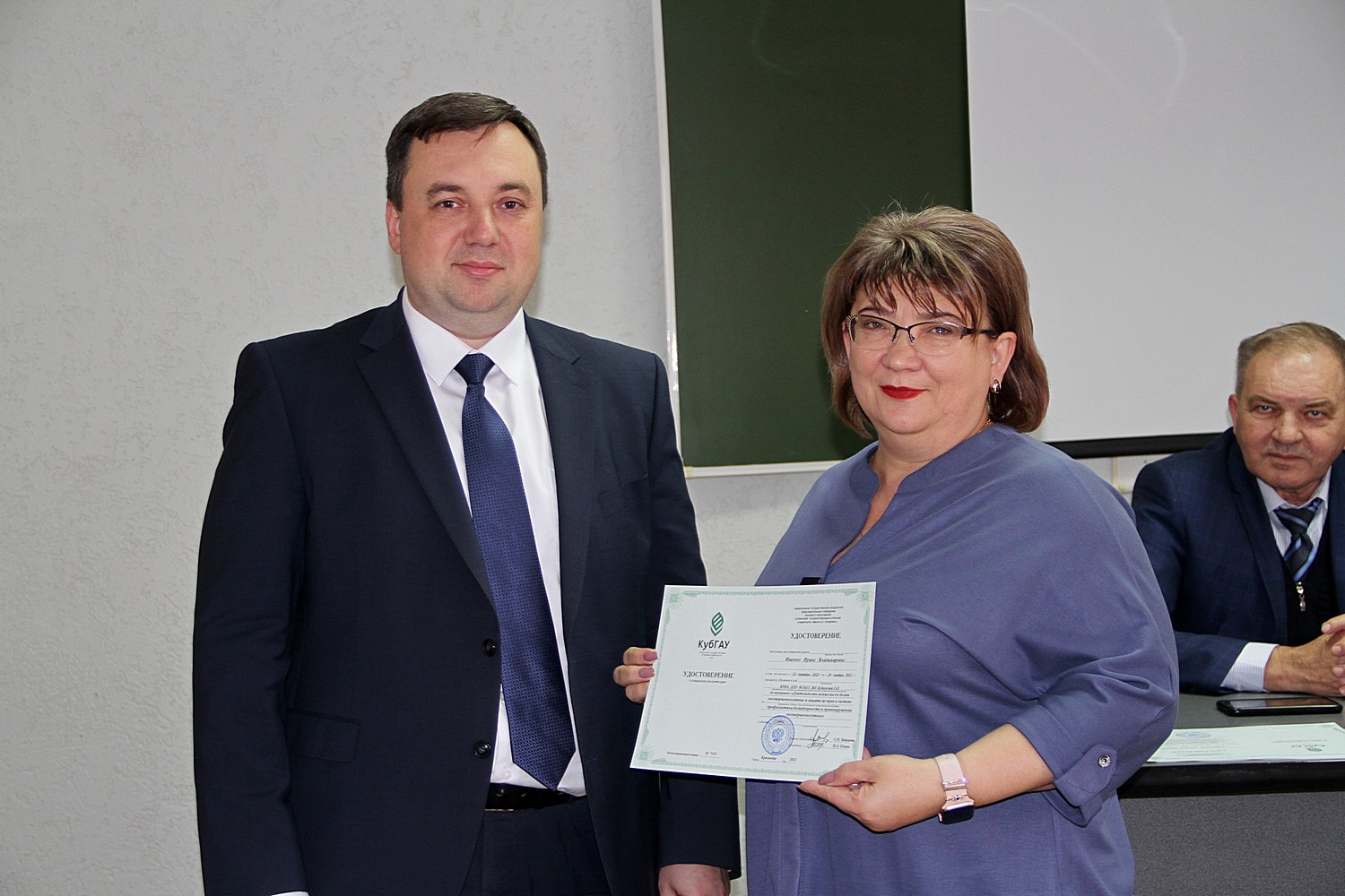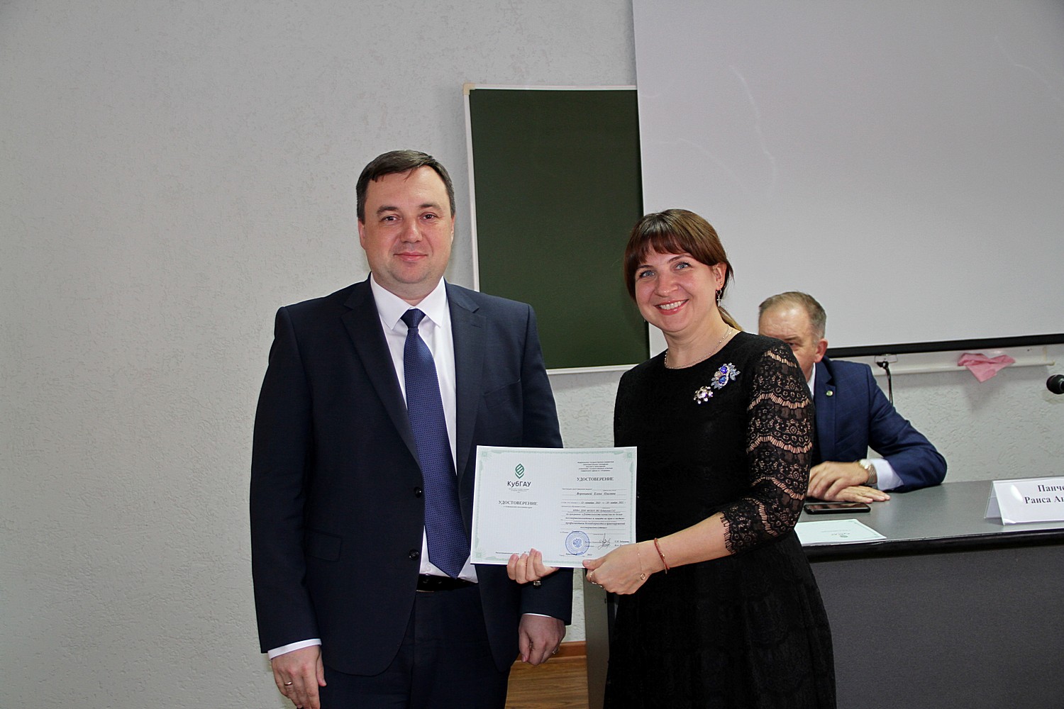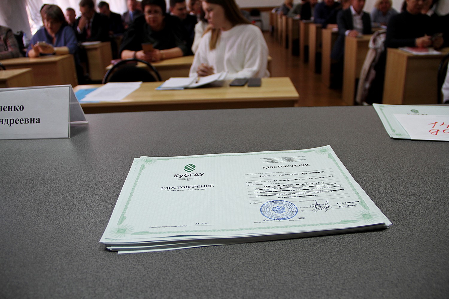 По окончании обучения первый заместитель министра труда и социального развития Краснодарского края, заместитель председателя комиссии по делам несовершеннолетних и защите их прав при администрации Краснодарского края Ирхин Дмитрий Алексеевич вручил удостоверения о повышении квалификации заместителям глав муниципальных образований края, председателям комиссий по делам несовершеннолетних и защите их прав.