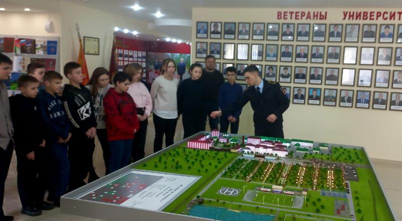 Экскурсию ребятам провели курсанты учебного заведения, которые рассказали об истории создания и развития университета, его знаменательных датах, событиях и великих людях. В залах, посвященных истории Великой Отечественной Войны и памяти ветеранов, ребятам напомнили о ключевых битвах и мужестве героев, благодаря которым победа стала возможной.