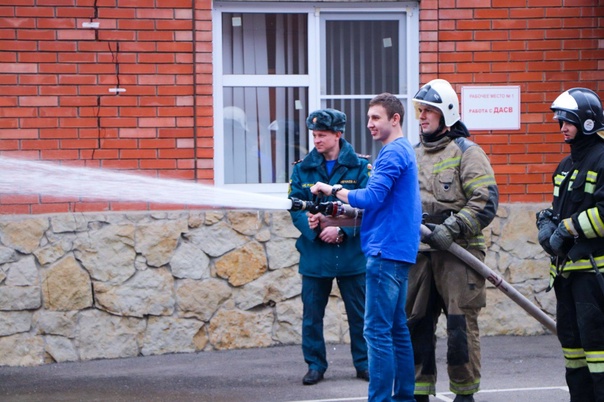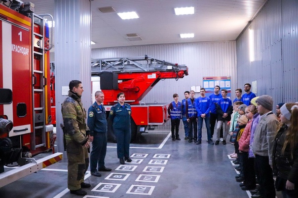 После урока для всех присутствующих была организована экскурсия по пожарно-спасательной части. Желающие попробовали тушить огонь из брандспойта, увидели, как спасатели собираются на выезд за 19 секунд, познакомились с «содержимым» пожарной машины.